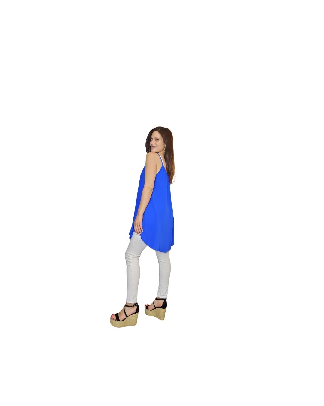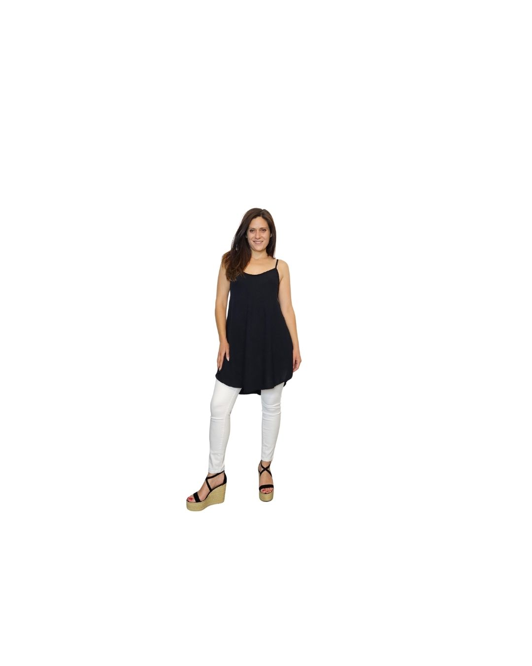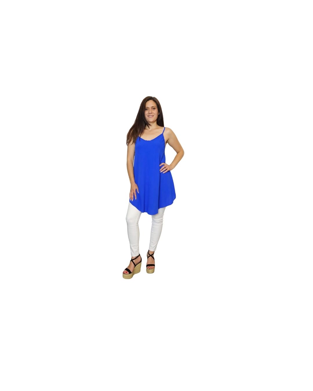 Ελαφρύ μπλουζάκι με λεπτές τιράντες και χαλαρή γραμμή,ιδανικό για καλοκαιρινές εμφανίσεις με στυλ.