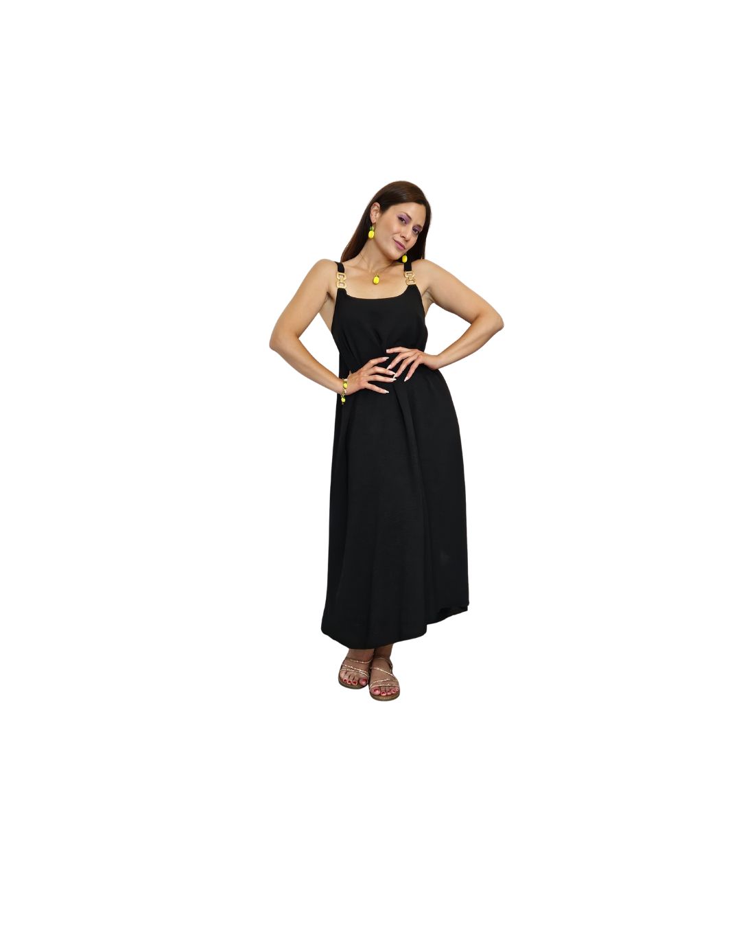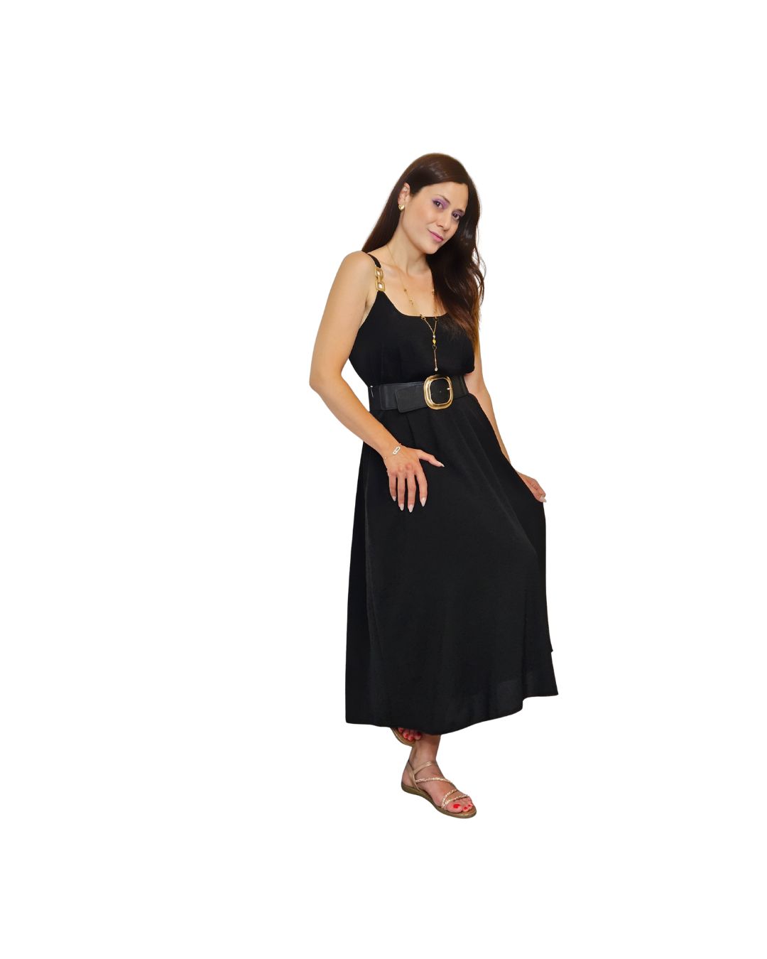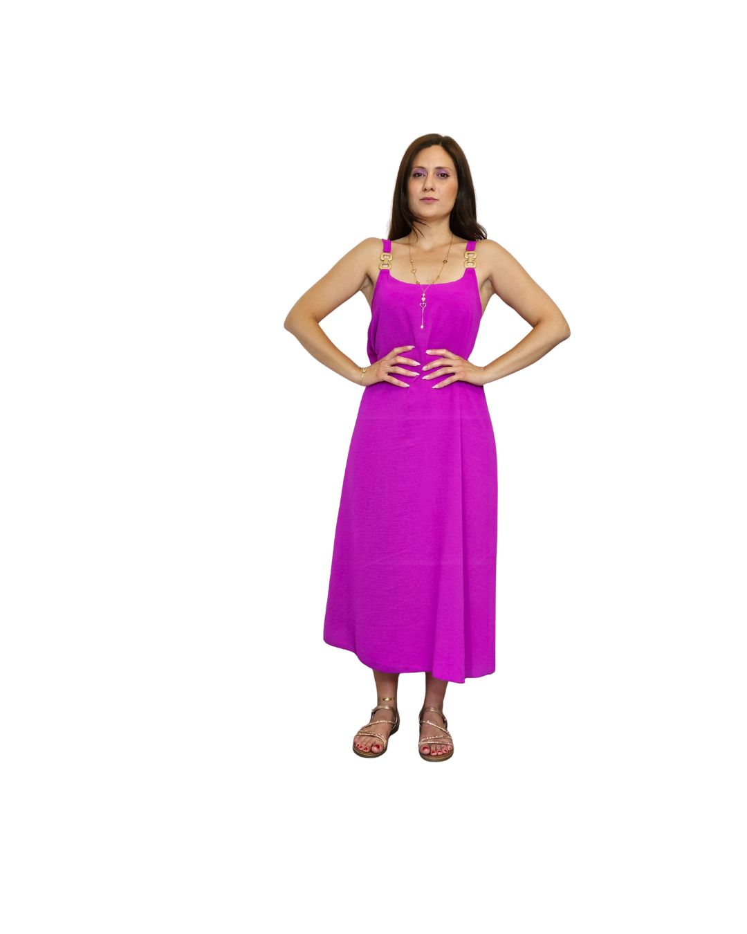 Ανάλαφρο maxi φόρεμα σχεδιασμένο να χαρίζει κίνηση και θηλυκότητα σε κάθε βήμα. Η γραμμή του πέφτει απαλά στο σώμα, δημιουργώντας κομψή ροή και άνετη εφαρμογή που φοριέται ευχάριστα όλη μέρα. Η διακοσμητική αγκράφα στους ώμους προσθέτει μια elegant λεπτομέρεια που αναβαθμίζει το σύνολο και δίνει ξεχωριστό χαρακτήρα χωρίς υπερβολές.