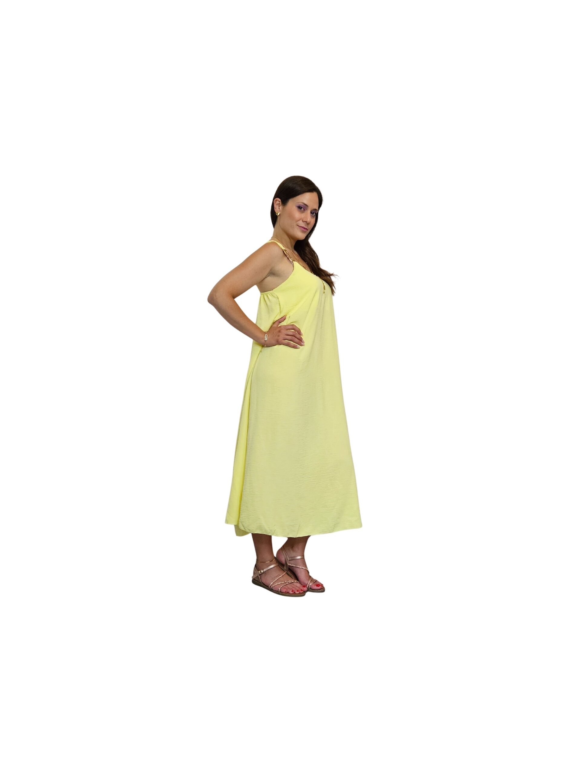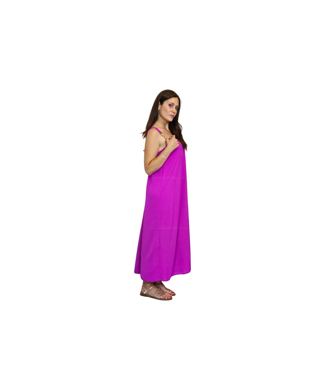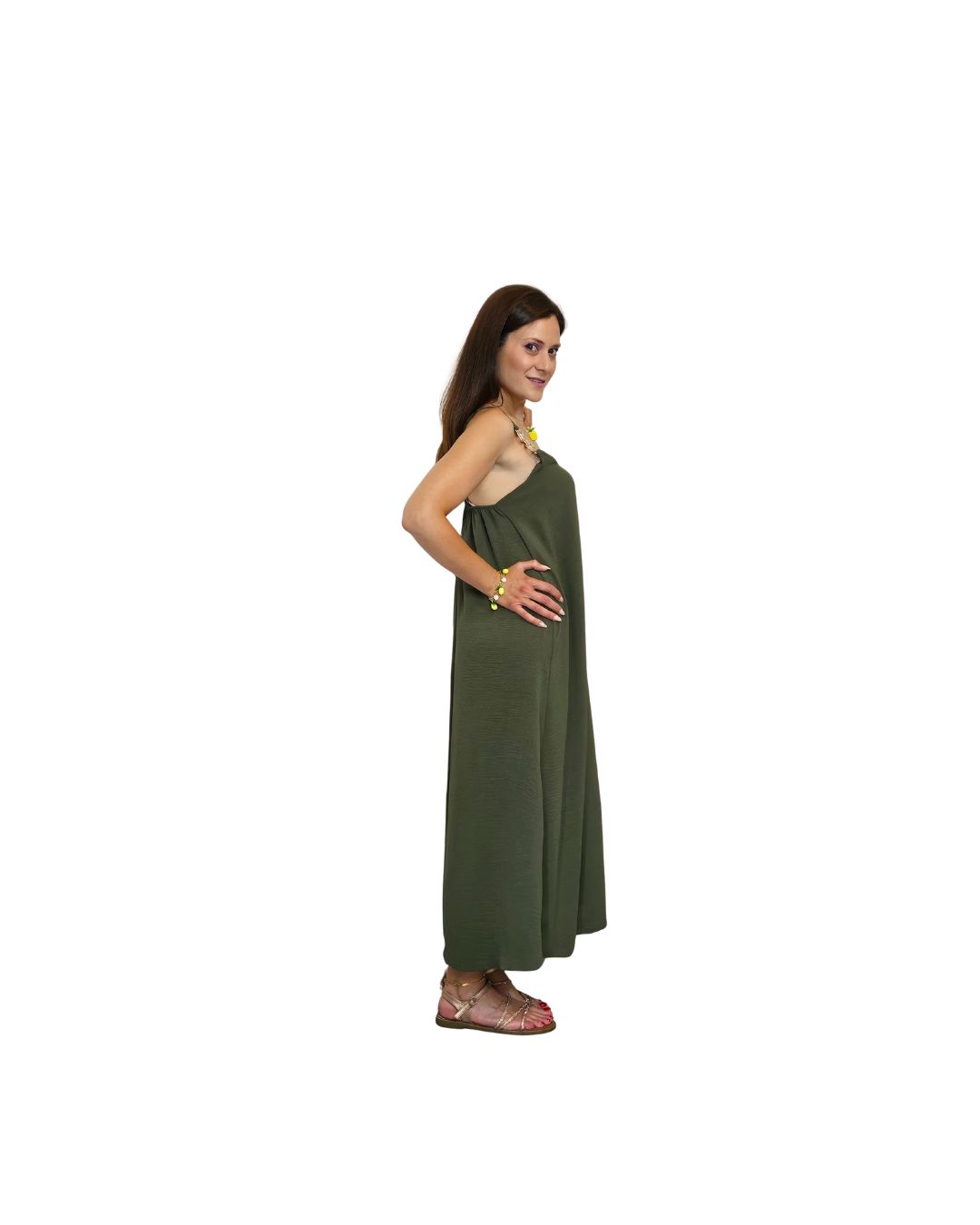 Ανάλαφρο maxi φόρεμα σχεδιασμένο να χαρίζει κίνηση και θηλυκότητα σε κάθε βήμα. Η γραμμή του πέφτει απαλά στο σώμα, δημιουργώντας κομψή ροή και άνετη εφαρμογή που φοριέται ευχάριστα όλη μέρα. Η διακοσμητική αγκράφα στους ώμους προσθέτει μια elegant λεπτομέρεια που αναβαθμίζει το σύνολο και δίνει ξεχωριστό χαρακτήρα χωρίς υπερβολές.