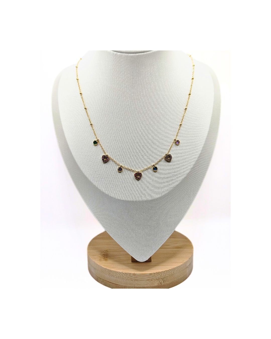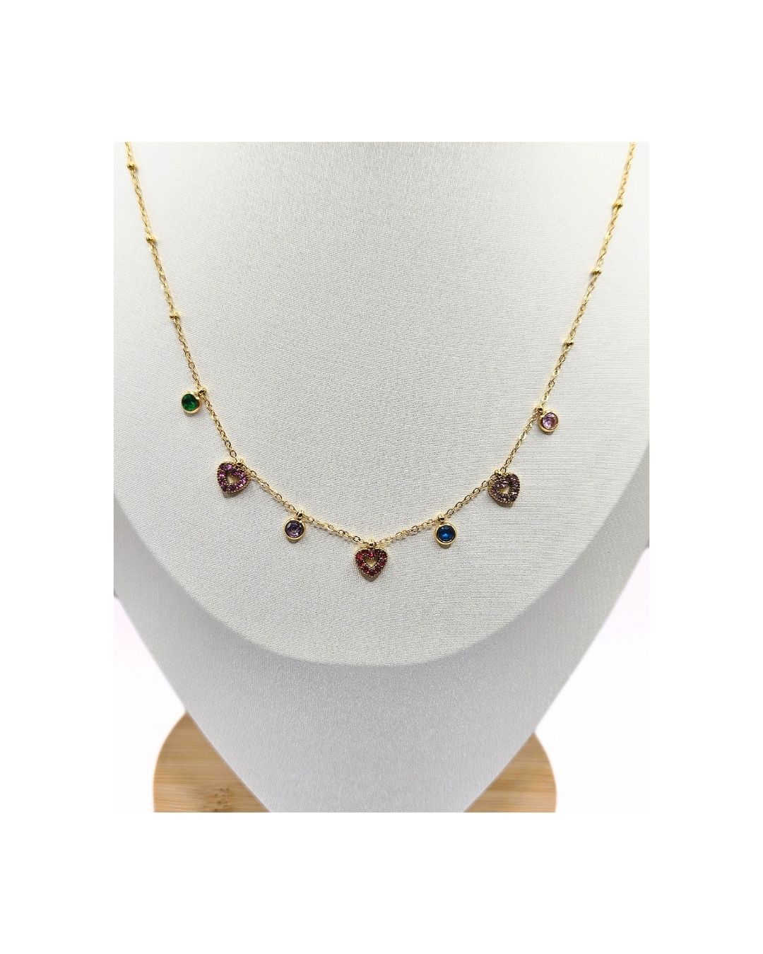 Λεπτό χρυσό αλυσιδάκι στολισμένο με πολύχρωμες καρδούλες και στρογγυλές λεπτομέρειες, που δίνουν μια παιχνιδιάρικη και φωτεινή νότα στο στυλ σου. Ιδανικό για να φέρεις ζωντάνια και θετική ενέργεια σε κάθε σου εμφάνιση.