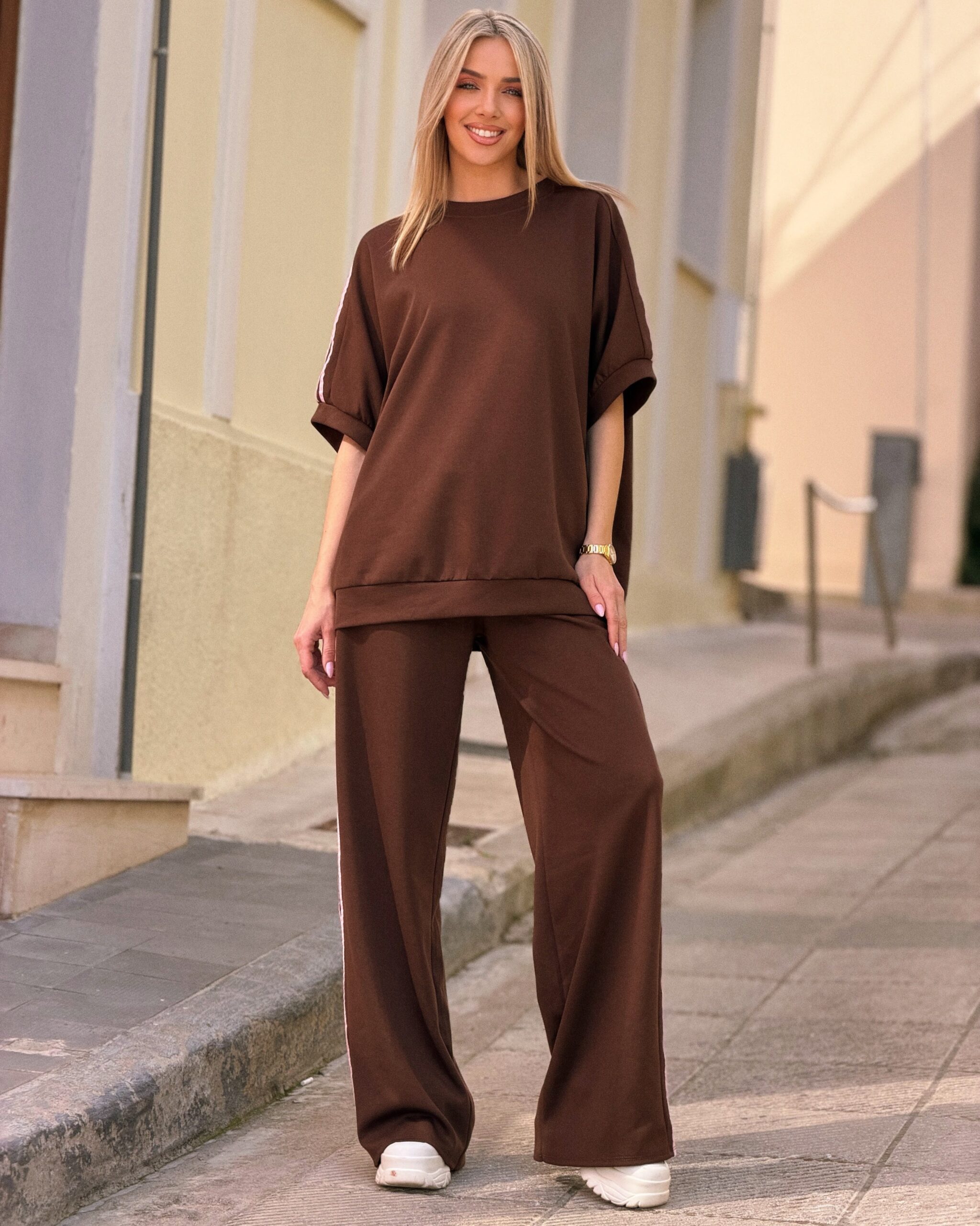 Άνετο και μοντέρνο γυναικείο σετ φόρμας που συνδυάζει στυλ και πρακτικότητα για καθημερινές εμφανίσεις. Το minimal design με τη διακριτική ρίγα στο πλάι δίνει ένα sporty-chic αποτέλεσμα, ιδανικό για όλες τις ώρες της ημέρας.
