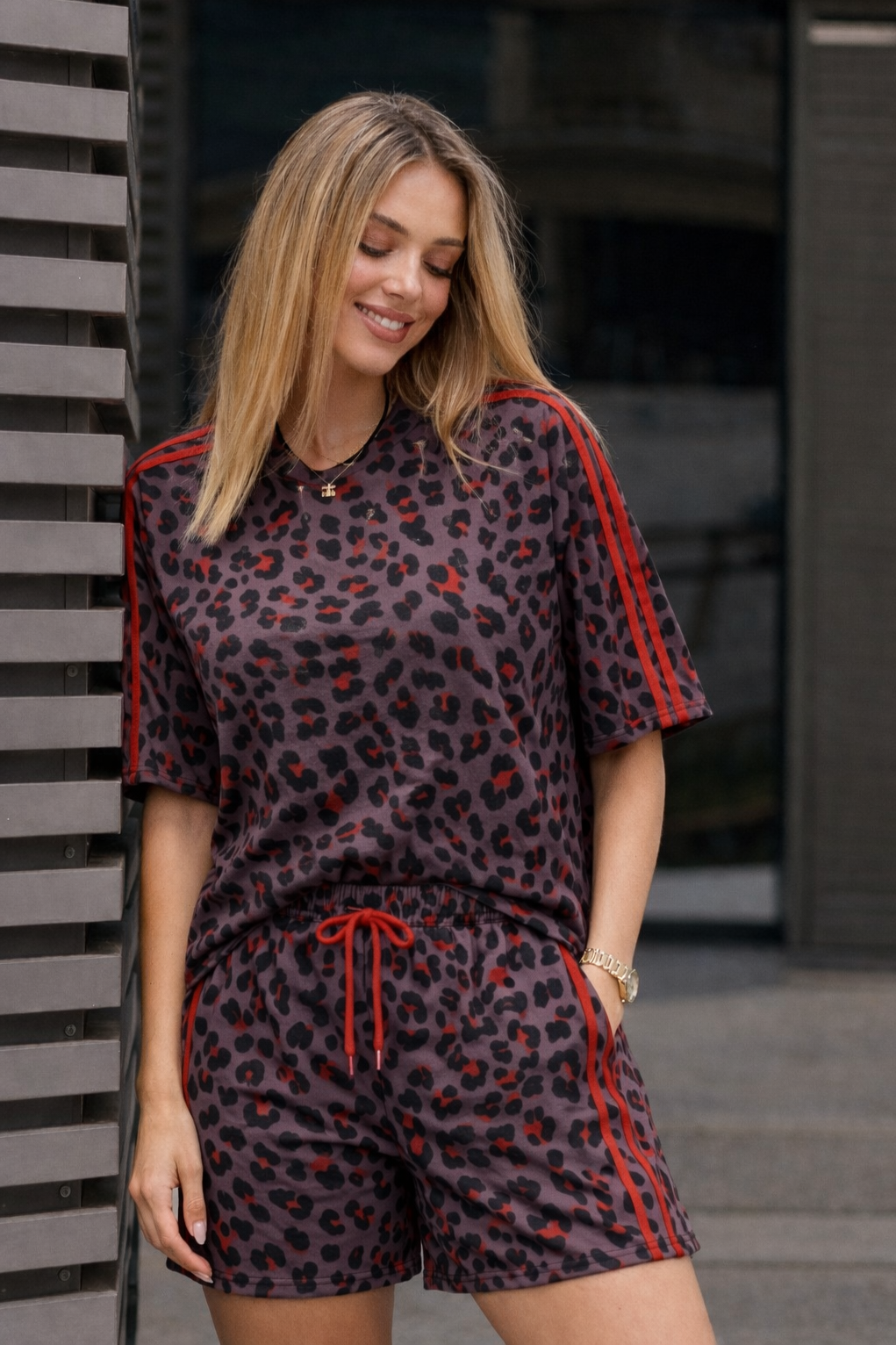Άνετο και μοντέρνο σετ με ιδιαίτερο print που ξεχωρίζει και δίνει δυναμικό χαρακτήρα στις εμφανίσεις σου. Η μπλούζα έχει χαλαρή γραμμή και προσφέρει άνεση, ενώ το σορτσάκι με λάστιχο και κορδόνι στη μέση εξασφαλίζει τέλεια εφαρμογή και ευκολία στην κίνηση. Ιδανικό για καθημερινές εμφανίσεις, βόλτες αλλά και ταξίδια, καθώς συνδυάζει στυλ και πρακτικότητα. Φοριέται άνετα όλη μέρα και μπορεί να συνδυαστεί εύκολα με sneakers ή πιο fashion items για πιο προσεγμένο look.