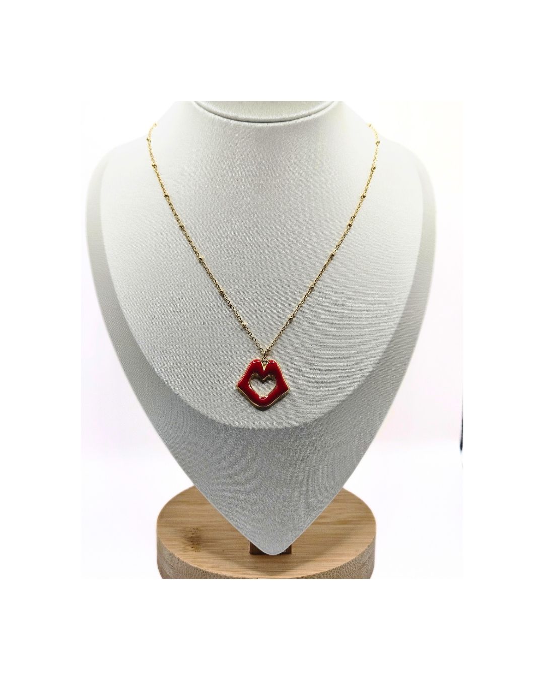 Λαμπερό χρυσό κολιέ με παιχνιδιάρικα χειλάκια σε κόκκινο, λευκό και μαύρο. Ένα statement κόσμημα που δίνει fun διάθεση και ξεχωρίζει σε κάθε look.
