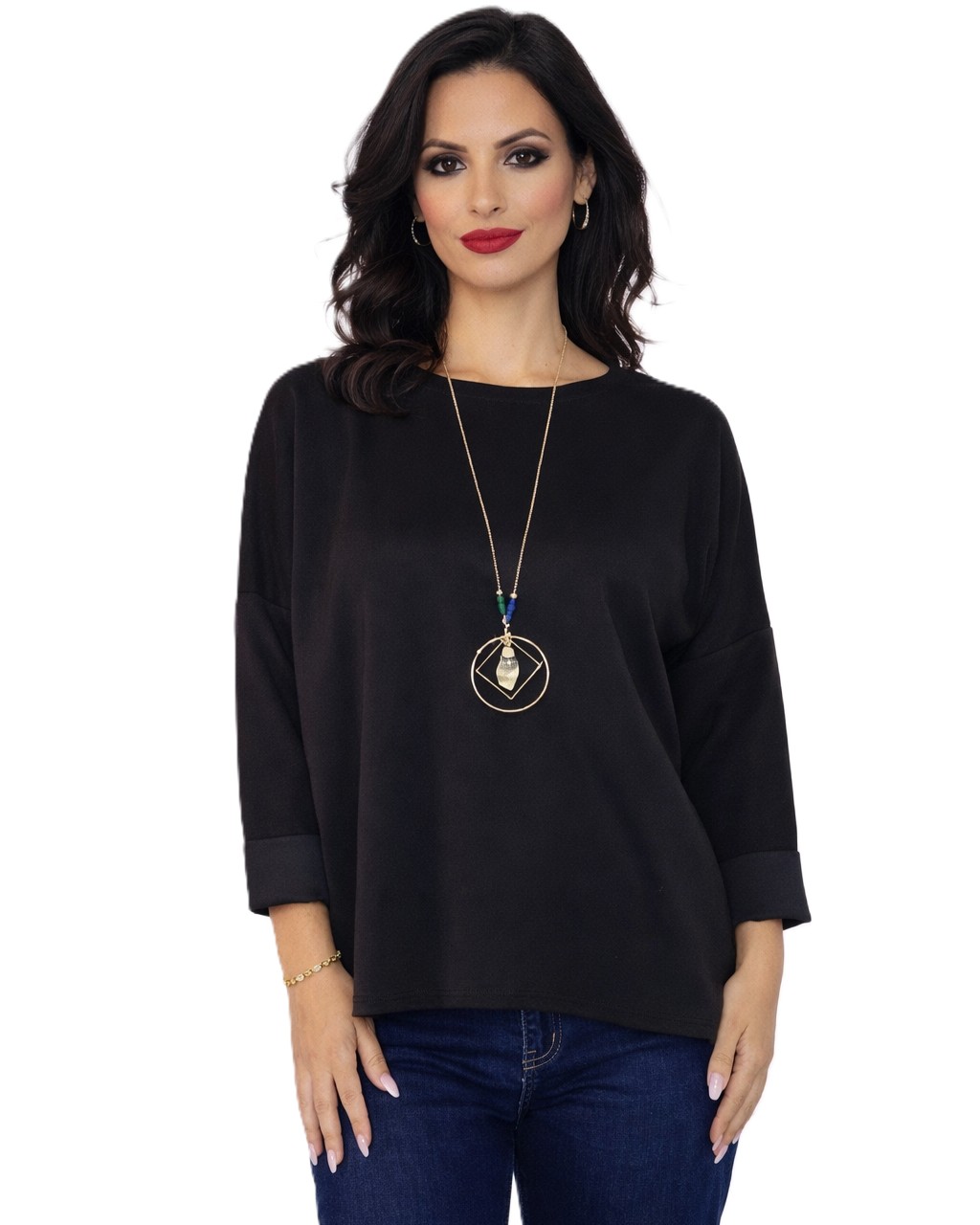 Η μακρυμάνικη μπλούζα με κολιέ είναι η ιδανική επιλογή για γυναίκες που θέλουν κομψότητα και προσεγμένο αποτέλεσμα χωρίς ιδιαίτερη προσπάθεια. Το κολιέ περιλαμβάνεται αλλά δεν είναι ενσωματωμένο, δίνοντάς σου τη δυνατότητα να το αφαιρείς ή να το συνδυάζεις με άλλα αξεσουάρ, προσαρμόζοντας εύκολα το look σου ανάλογα με την περίσταση.