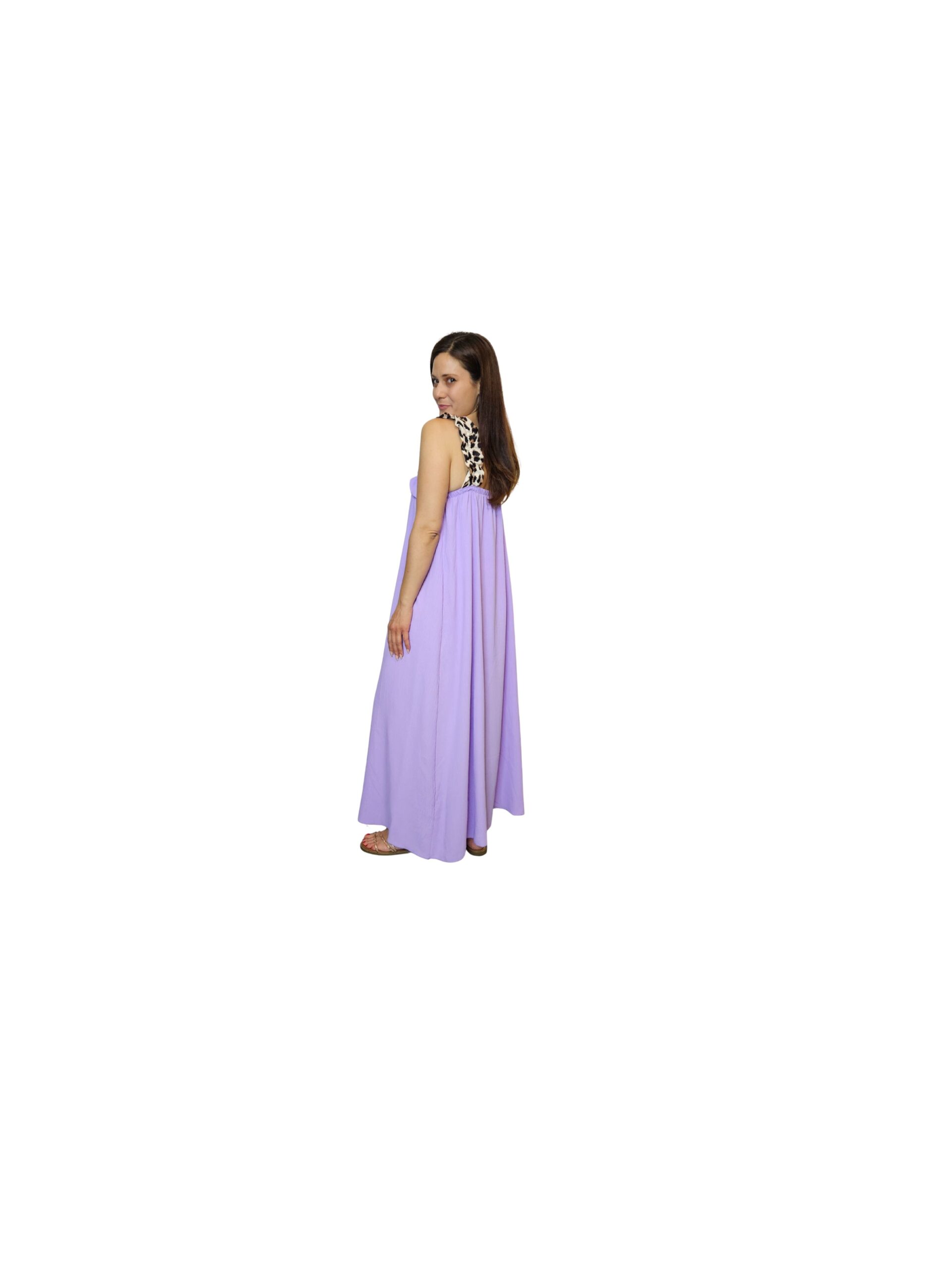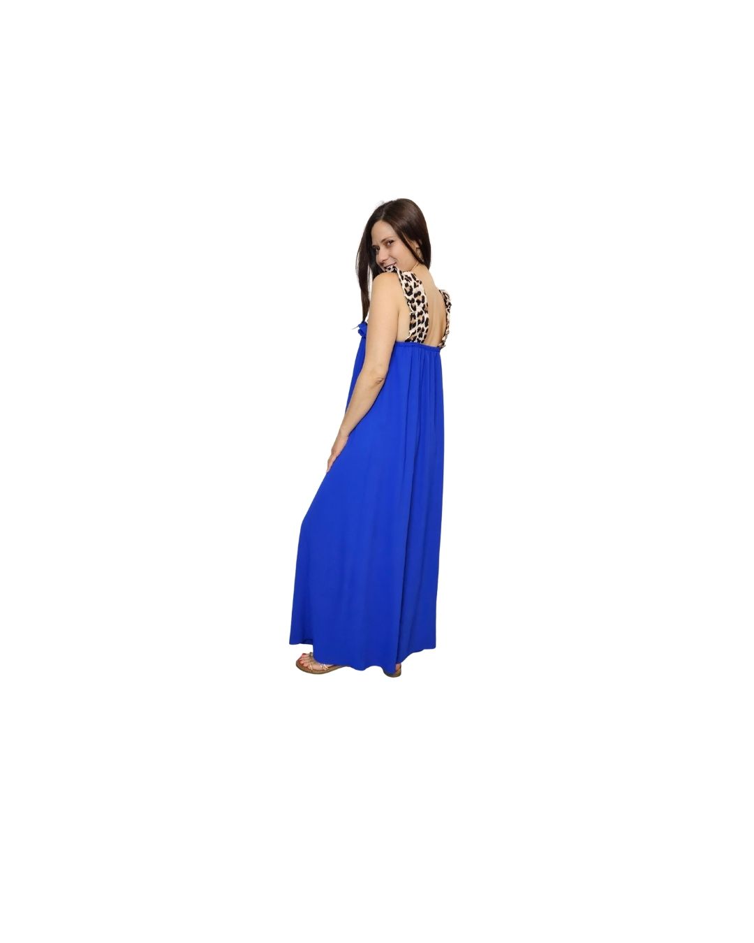 Αέρινο maxi φόρεμα που χαρίζει ελευθερία κινήσεων και θηλυκή κομψότητα σε κάθε εμφάνιση. Το βολάν στο επάνω μέρος δημιουργεί όμορφη κίνηση και ανάλαφρη αίσθηση, ενώ οι ιδιαίτερες τιράντες προσθέτουν μια διακριτική αλλά μοντέρνα πινελιά που κάνει το σύνολο να ξεχωρίζει.