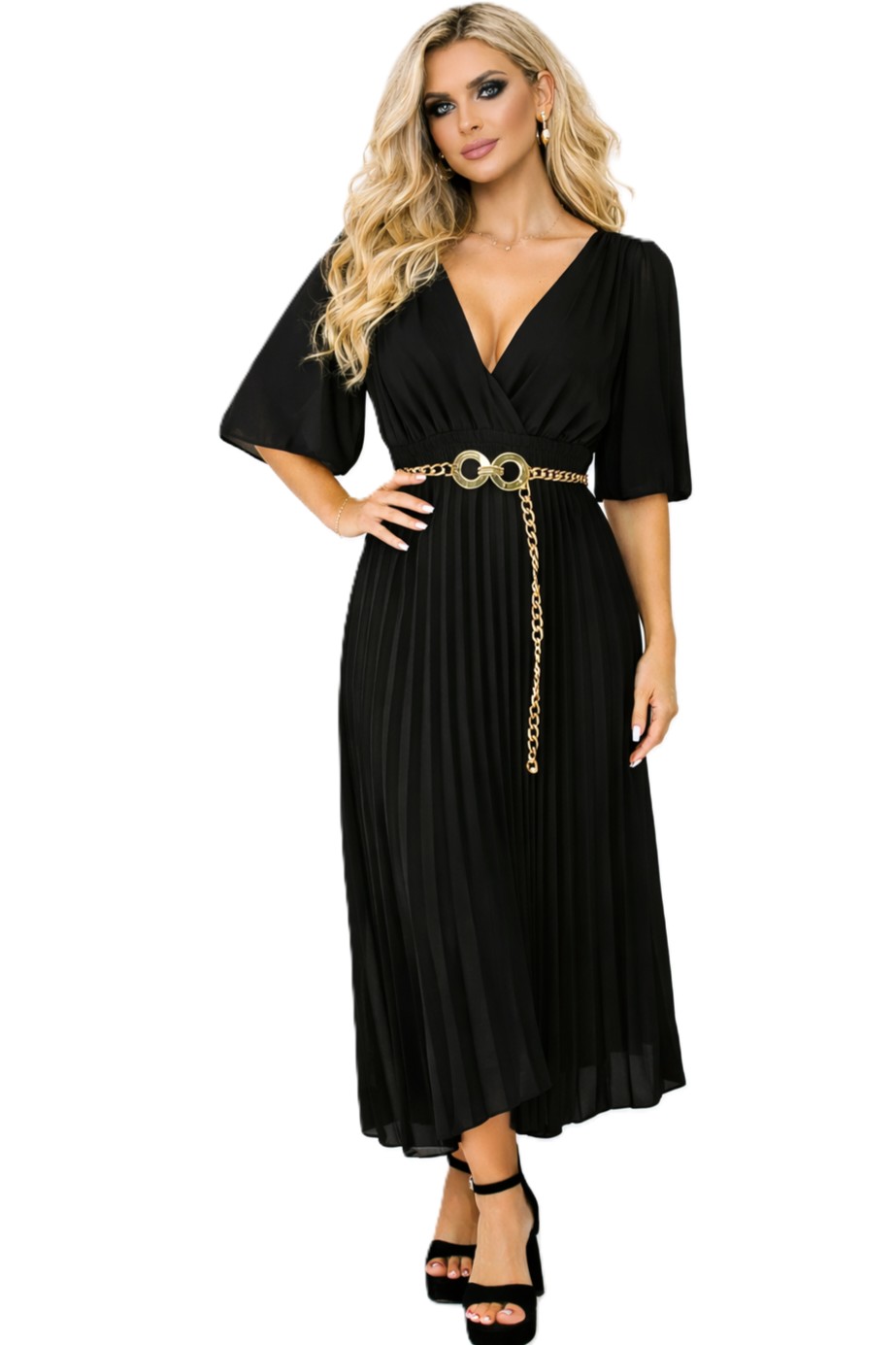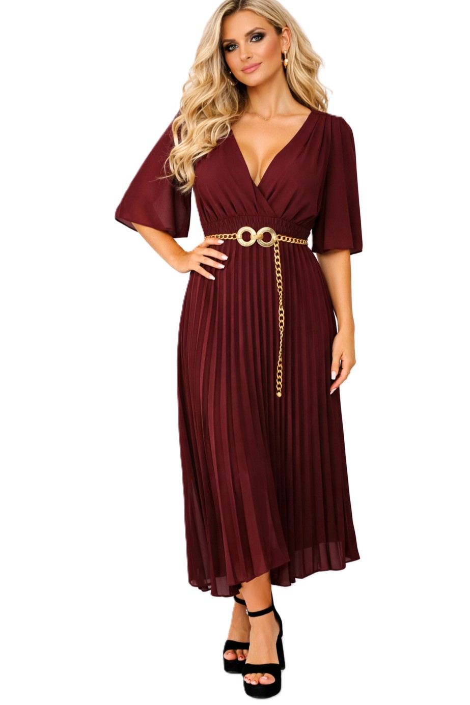 Πλισέ maxi φόρεμα με V ντεκολτέ και αέρινη κίνηση, ιδανικό για κομψές και ιδιαίτερες εμφανίσεις.