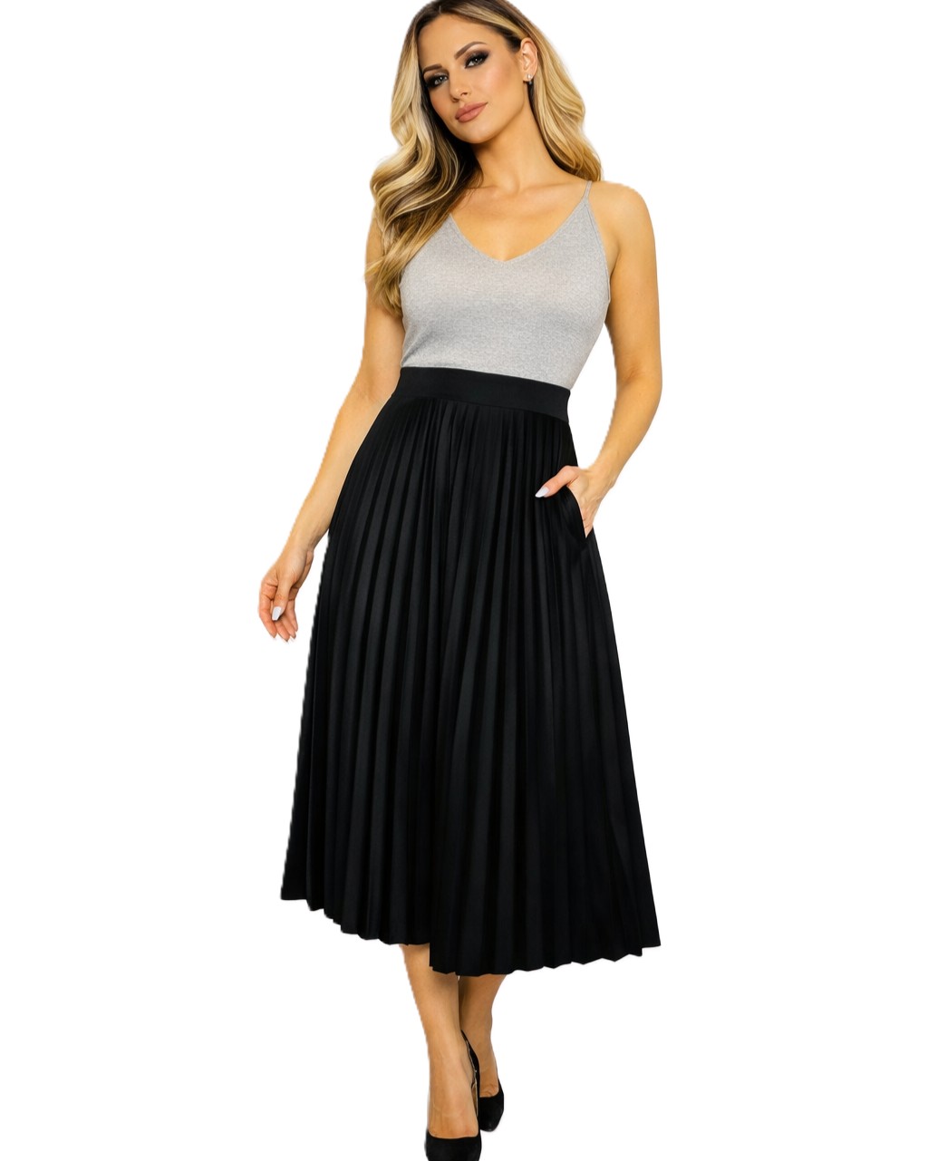 Πλισέ midi φούστα που συνδυάζει κομψότητα και άνεση, δημιουργώντας ένα θηλυκό και διαχρονικό αποτέλεσμα σε κάθε εμφάνιση. Το αέρινο ύφασμά της χαρίζει φυσική κίνηση και ελευθερία στο περπάτημα, ενώ η γραμμή της πέφτει απαλά, κολακεύοντας τη σιλουέτα χωρίς να πιέζει. Το πλισέ σχέδιο προσθέτει κομψότητα και ζωντάνια στο look, κάνοντάς τη ιδανική επιλογή για καθημερινές αλλά και πιο προσεγμένες εμφανίσεις.