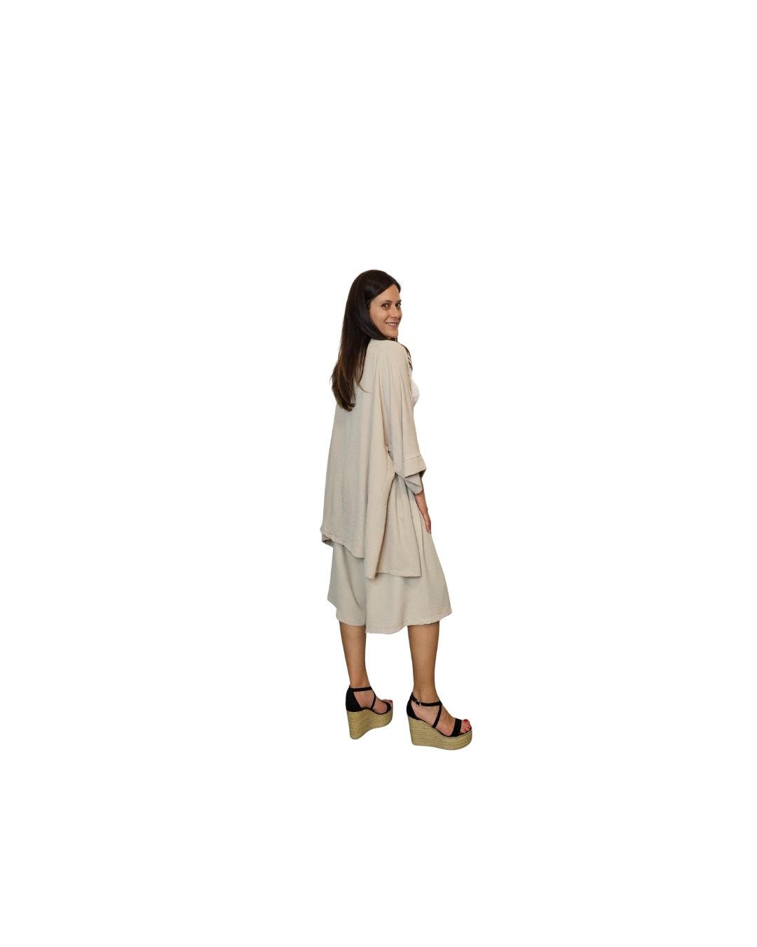 Αέρινο σετ με ζιπ κιλότ και πουκαμίσα για κομψές και άνετες καλοκαιρινές εμφανίσεις.