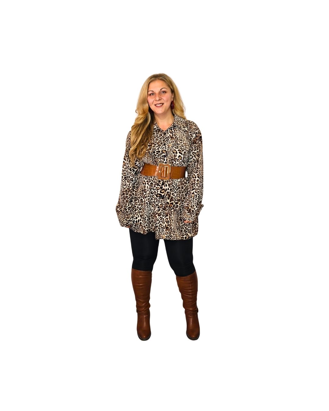 Αναβάθμισε το καθημερινό σου ντύσιμο με αυτή την εντυπωσιακή plus size πουκαμίσα animal print, σχεδιασμένη για να αναδεικνύει όμορφα τις γυναικείες καμπύλες. Η άνετη γραμμή της προσφέρει ελευθερία κινήσεων και σωστή εφαρμογή χωρίς να πιέζει, ενώ το ανάλαφρο ύφασμα πέφτει απαλά στο σώμα χαρίζοντας κομψή κίνηση. Το animal print μοτίβο προσθέτει δυναμισμό και θηλυκό χαρακτήρα, καθιστώντας τη ιδανική επιλογή τόσο για επαγγελματικές εμφανίσεις όσο και για πιο βραδινά looks. Φοριέται εύκολα με παντελόνι, κολάν ή jeans, δημιουργώντας διαφορετικά outfits ανάλογα με το στυλ της ημέρας.