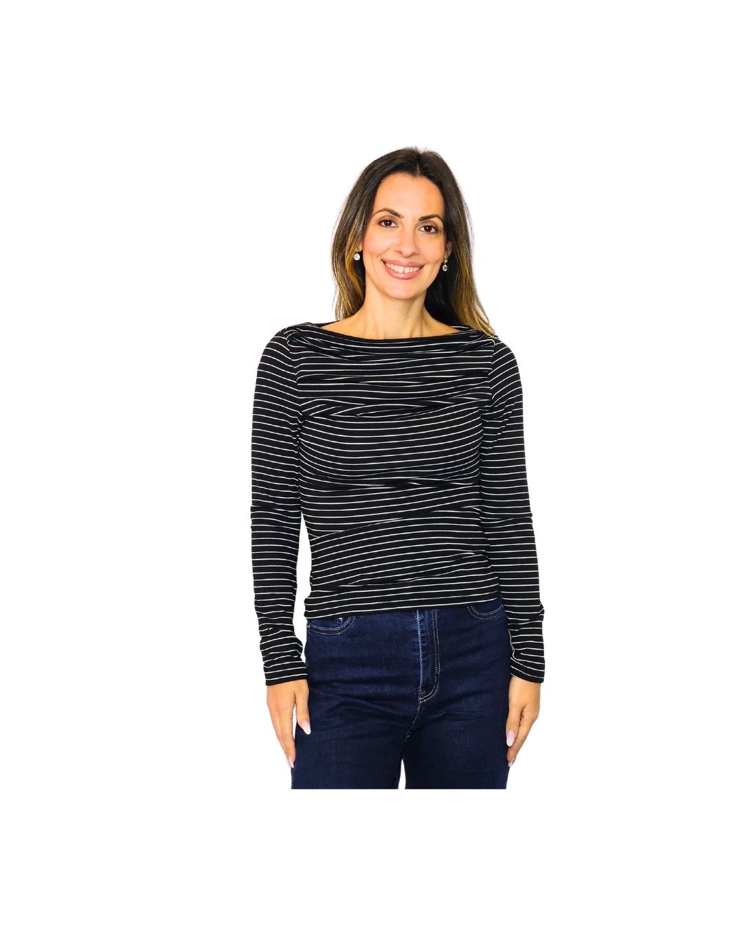 Αυτό το ριγέ μακρυμάνικο μπλουζάκι με λαιμόκοψη χαμόγελο είναι η τέλεια επιλογή για όσες αγαπούν την απλότητα με στυλ. Η ελαφριά υφή της βισκόζης προσφέρει εξαιρετική απαλότητα και άνεση, ενώ η προσθήκη ελαστάνης εξασφαλίζει τέλεια εφαρμογή και ελευθερία κινήσεων.