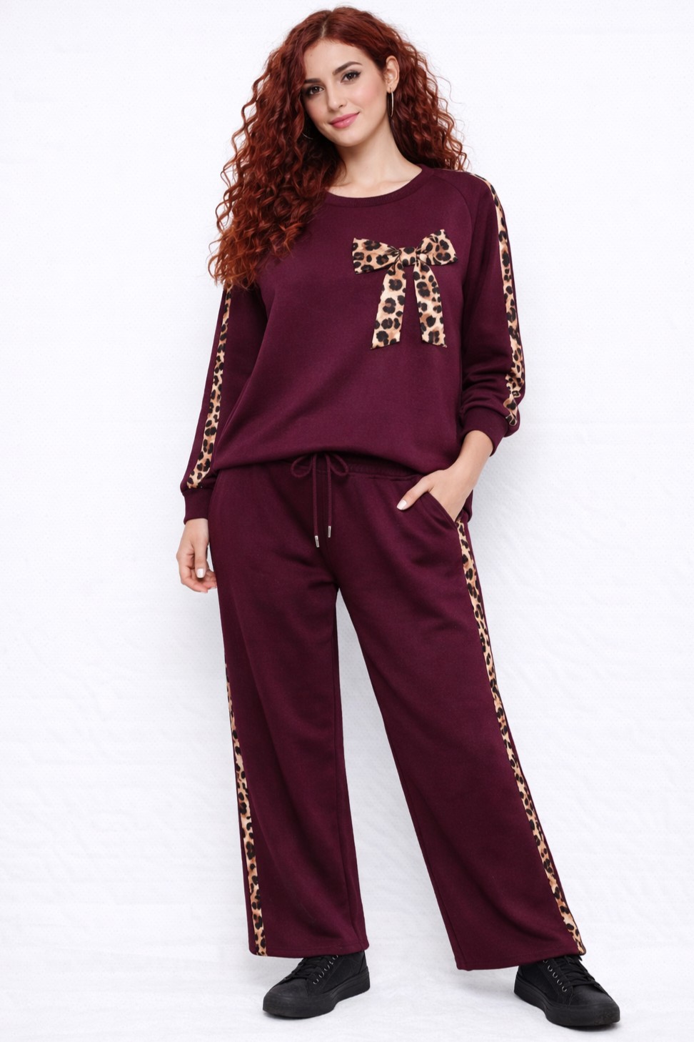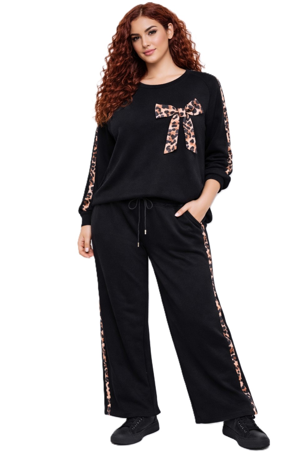 Ξεχωριστό σετ φόρμας που συνδυάζει άνεση και μοντέρνο στυλ, ιδανικό για καθημερινές εμφανίσεις με fashion χαρακτήρα. Η μπλούζα με στρογγυλή λαιμόκοψη διαθέτει διακοσμητικό φιόγκο στο μπροστινό μέρος, χαρίζοντας μία θηλυκή και παιχνιδιάρικη πινελιά, ενώ τα animal print τελειώματα στα μανίκια προσθέτουν δυναμικό ύφος στο σύνολο. Το παντελόνι με λάστιχο και κορδόνι στη μέση εξασφαλίζει σταθερή και άνετη εφαρμογή, ενώ οι αντίστοιχες animal print λεπτομέρειες στο πλάι δημιουργούν ένα αρμονικό και ολοκληρωμένο αποτέλεσμα. Ένα σετ που φοριέται άνετα από το πρωί έως το βράδυ, για βόλτες, καθημερινές δραστηριότητες ή χαλαρές στιγμές στο σπίτι με στυλ.