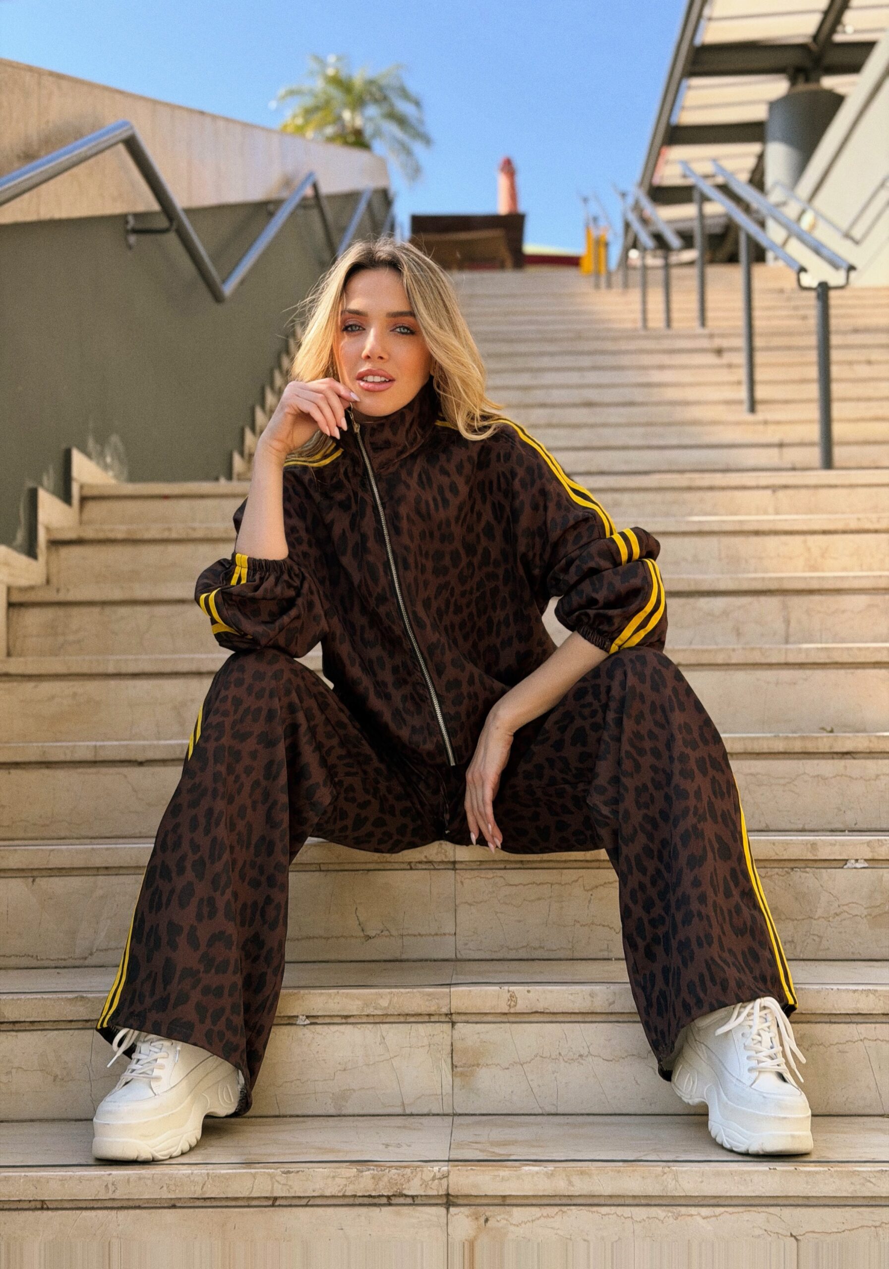 Σετ φόρμας που συνδυάζει άνεση και δυναμικό χαρακτήρα, δημιουργώντας ένα σύνολο που φοριέται εύκολα όλη την ημέρα. Το ιδιαίτερο μοτίβο δίνει μοντέρνα αισθητική στο look, ενώ οι διακριτικές λεπτομέρειες στα πλαϊνά προσθέτουν sporty ύφος που κάνει το σύνολο να ξεχωρίζει.