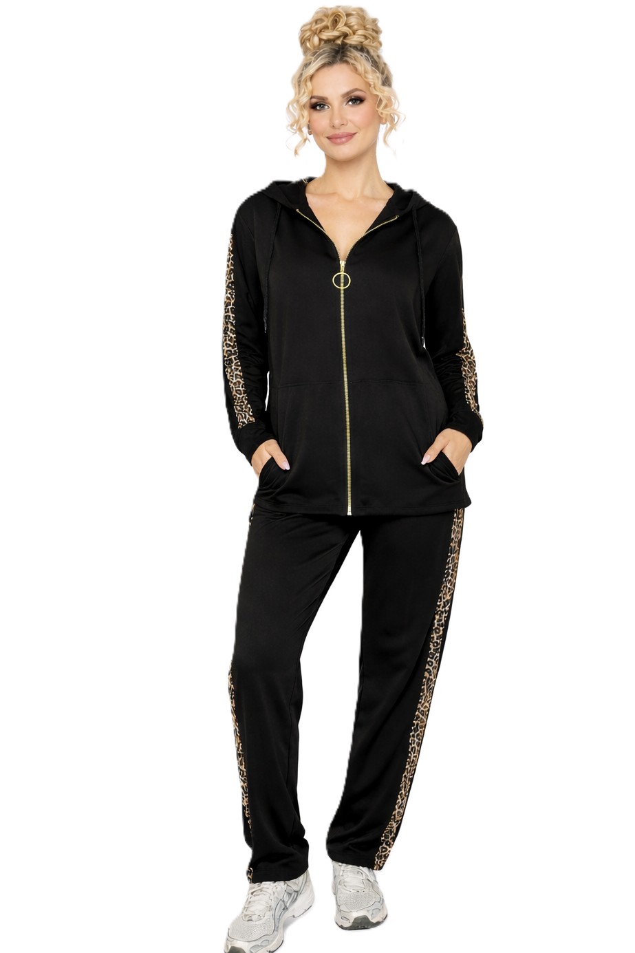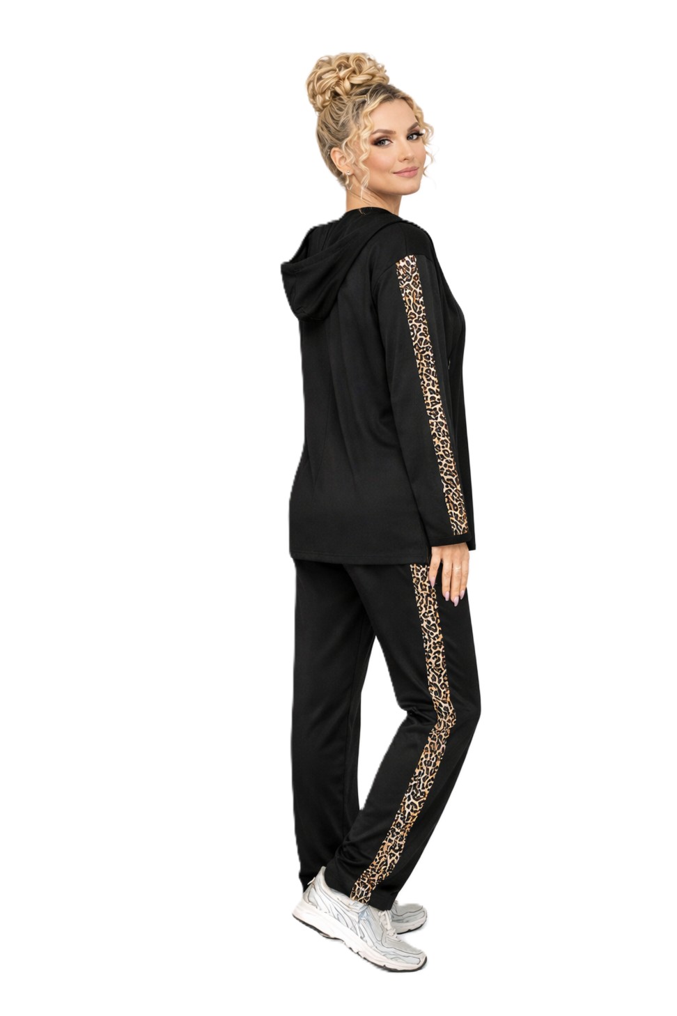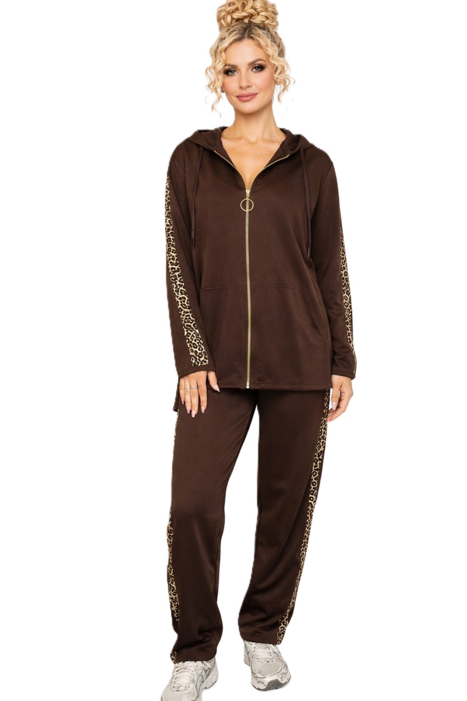 Μοντέρνο σετ φόρμας που συνδυάζει άνεση και δυναμικό στυλ, ιδανικό για καθημερινές εμφανίσεις με fashion χαρακτήρα. Η ζακέτα με κουκούλα και κορδόνι προσφέρει πρακτικότητα και άνετη εφαρμογή, ενώ το παντελόνι με ελαστική μέση προσαρμόζεται εύκολα στο σώμα χαρίζοντας σταθερότητα και ελευθερία κινήσεων. Η λεοπάρ ρίγα προσθέτει μια ιδιαίτερη και παιχνιδιάρικη πινελιά, αναβαθμίζοντας το sporty ύφος του συνόλου. Φοριέται άνετα όλη μέρα, από βόλτες και ταξίδια μέχρι χαλαρές καθημερινές δραστηριότητες, ενώ μπορεί να φορεθεί μαζί ως σετ ή ξεχωριστά για περισσότερους συνδυασμούς.