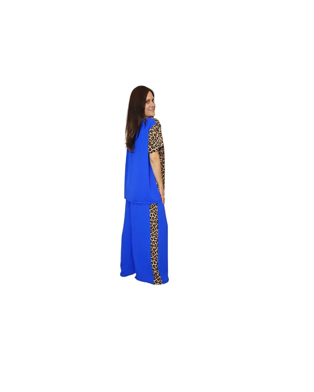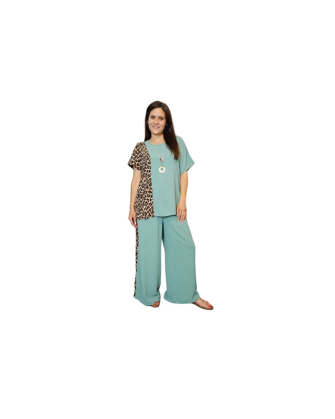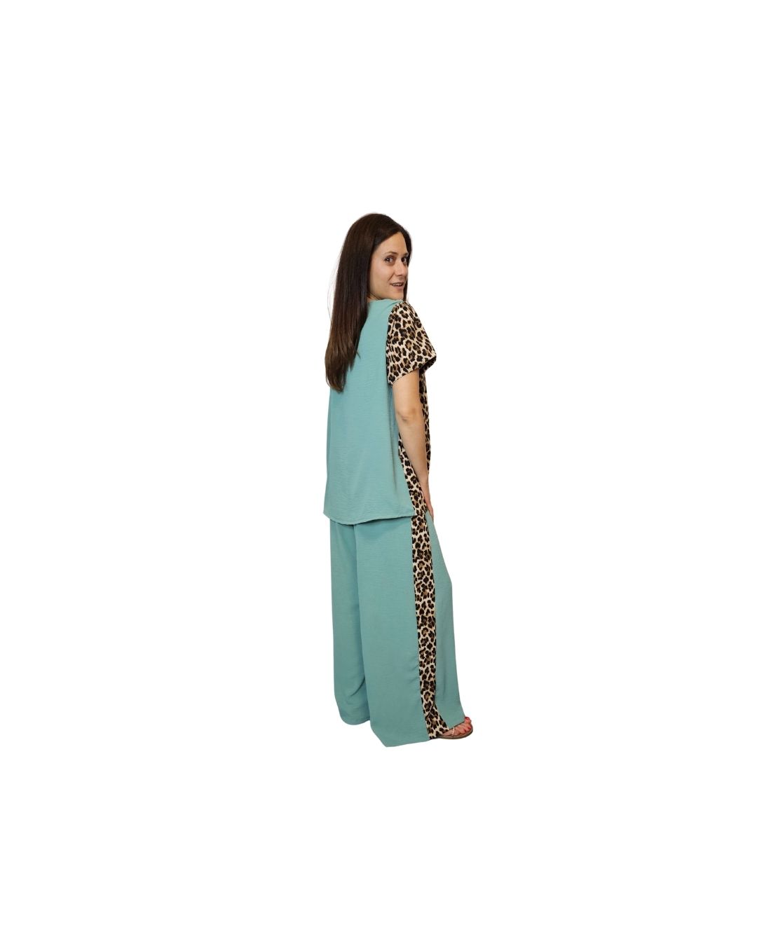 Αέρινο σετ με μακρυά μπλούζα και κολιέ και παντελόνα διακοσμημένα με animal print στο πλάι για διακριτική ένταση.Αέρινο ύφασμα για all day καλοκαιρινό στύλ.