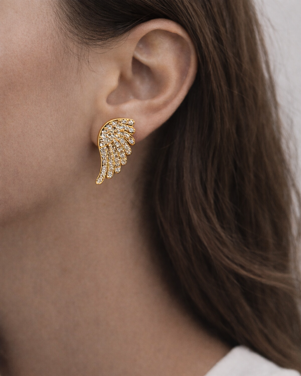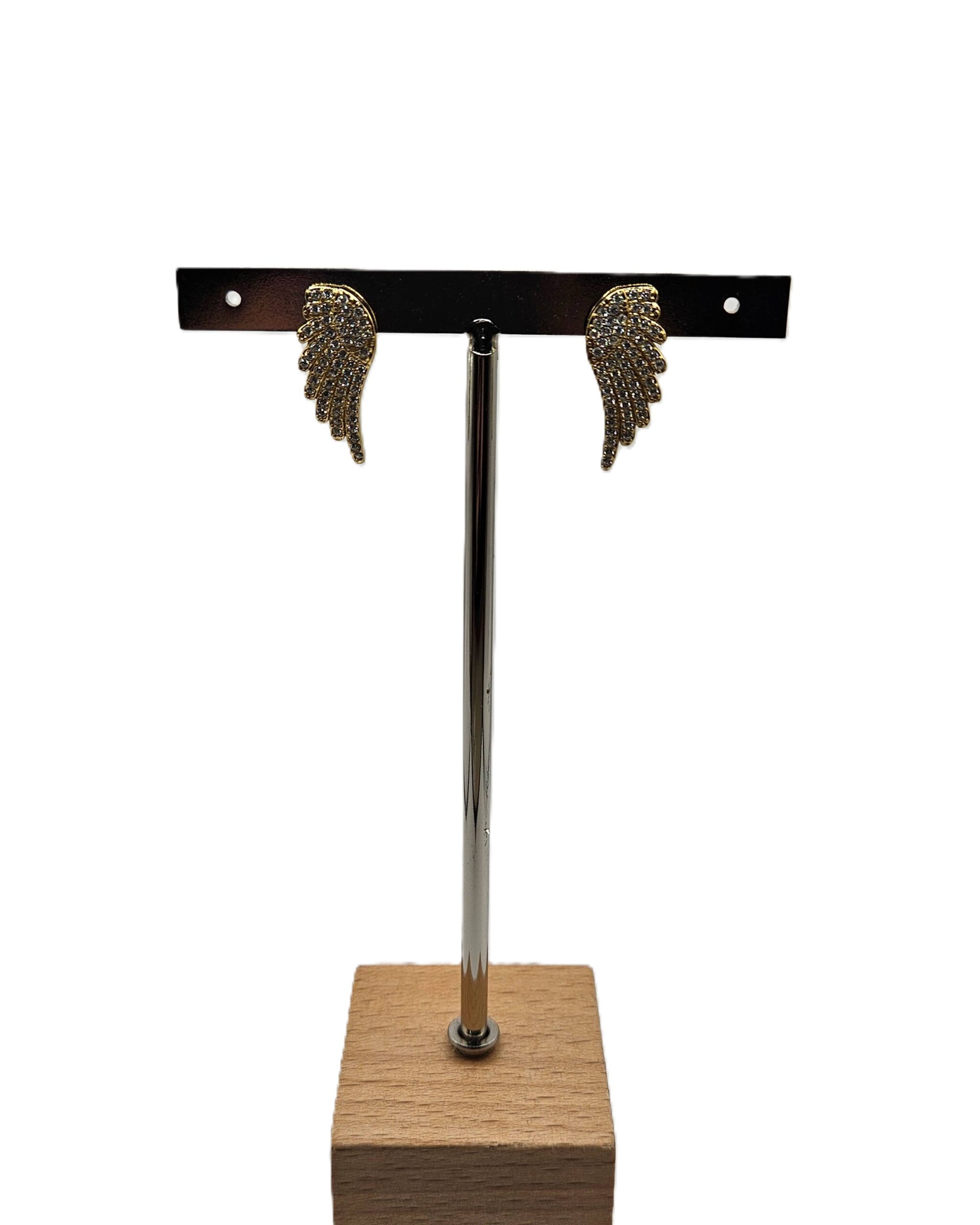 Εντυπωσιακά σκουλαρίκια με σχέδιο φτερού αγγέλου που συνδυάζουν κομψότητα και διαχρονικό στυλ. Η λεπτομερής κατασκευή τους και οι λαμπερές πέτρες χαρίζουν μοναδική φωτεινότητα, αναδεικνύοντας όμορφα το πρόσωπο σε κάθε εμφάνιση. Το ιδιαίτερο σχέδιο προσθέτει μία ρομαντική αλλά και μοντέρνα πινελιά, κάνοντάς τα ιδανικά τόσο για καθημερινά looks όσο και για πιο βραδινές εξόδους. Ένα κόσμημα που ξεχωρίζει χωρίς υπερβολές και ολοκληρώνει κάθε outfit με διακριτική λάμψη.