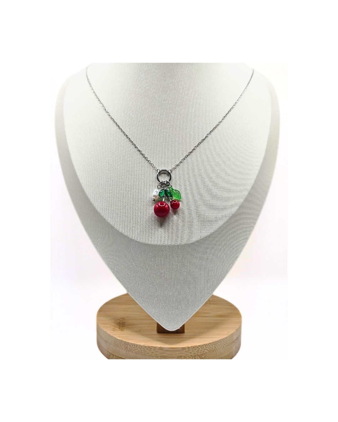 Ασημένιο κολιέ με εντυπωσιακό κερασάκι που τραβάει όλα τα βλέμματα. Ένα φρέσκο και χαριτωμένο κόσμημα που δίνει παιχνιδιάρικη νότα σε κάθε outfit.
