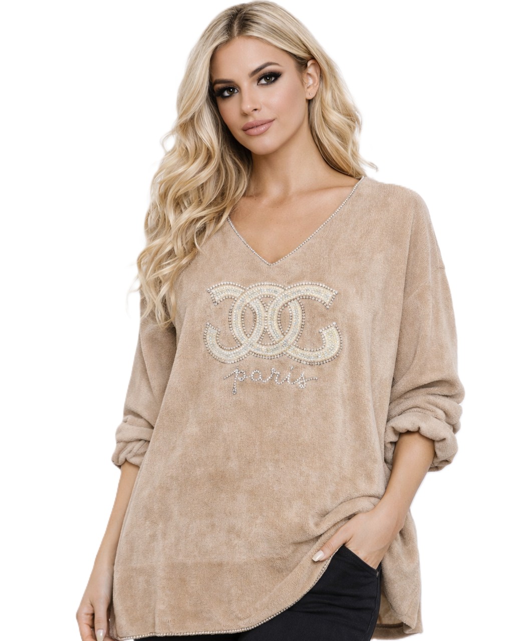 Εντυπωσιακή μπλούζα από απαλό βελούδινο ύφασμα που προσφέρει άνεση και κομψότητα σε κάθε εμφάνιση. Η μαλακή υφή της χαρίζει ευχάριστη αίσθηση στο σώμα, ενώ η άνετη γραμμή αγκαλιάζει όμορφα τη σιλουέτα χωρίς να πιέζει, επιτρέποντας ελευθερία κινήσεων όλη μέρα.